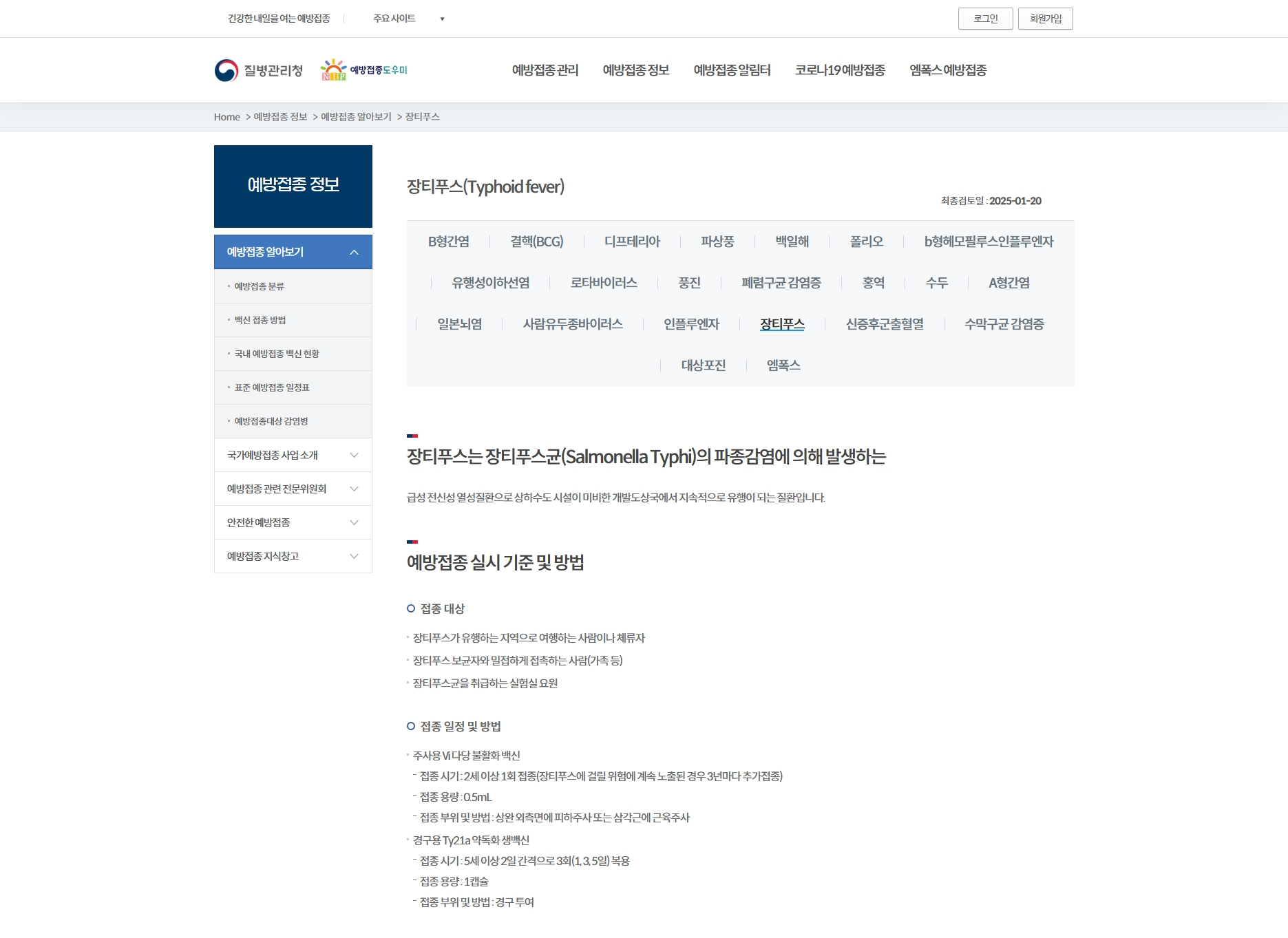 2. 장티푸스 예방접종 접종 시기와 대상자