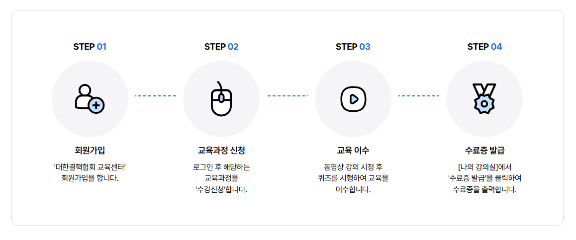 회원가입을 완료했다면, 이제 교육을 신청하고 수강료를 결제할 차례입니다.