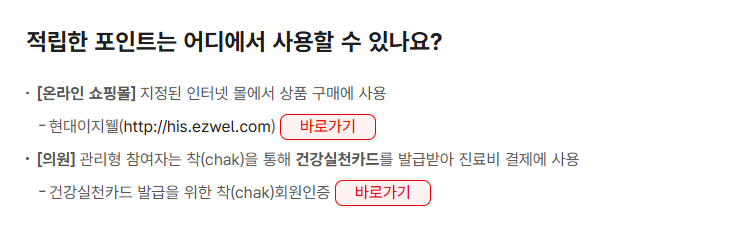 제휴된 온라인 쇼핑몰에서도 사용할 수 있으며, 주로 건강용품이나 운동용품을 판매하는 곳이 많습니다.