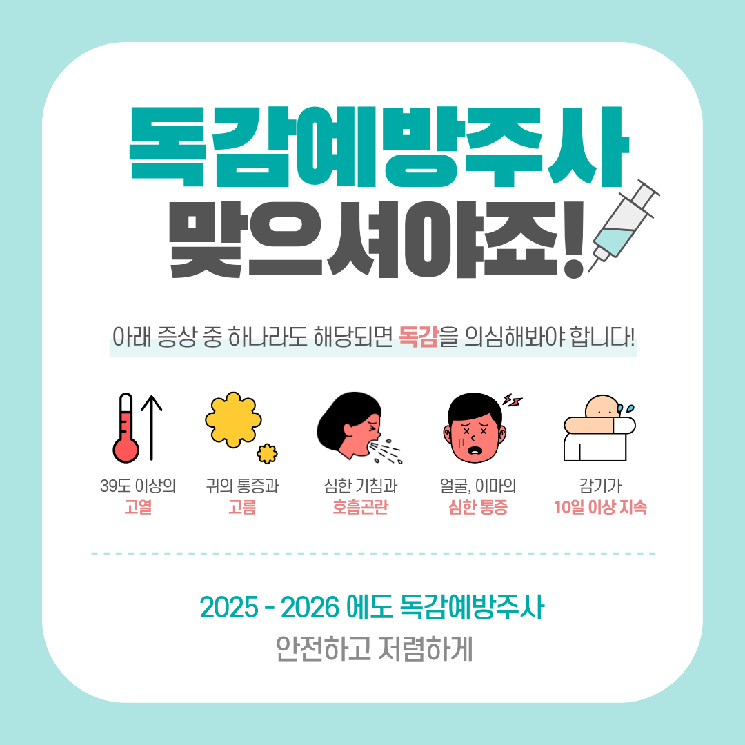 지금 당장 접종 시기를 놓치면, 독감 유행철에 후회할 수 있습니다. 3분 투자로 가족 건강을 지키세요!