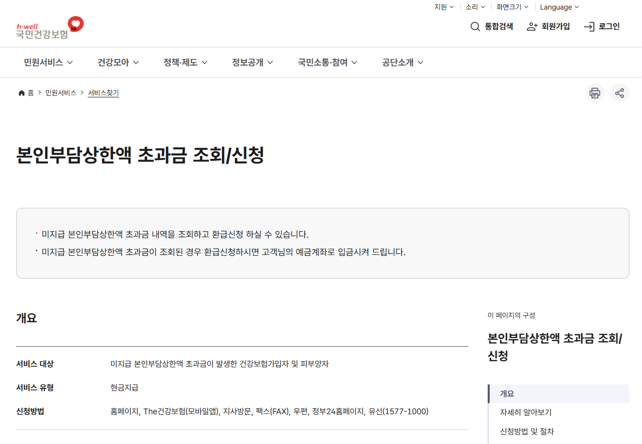 The건보 홈페이지에 접속하여 본인부담상한제 초과금 지급 대상 여부를 반드시 확인하고 즉시 신청하세요.