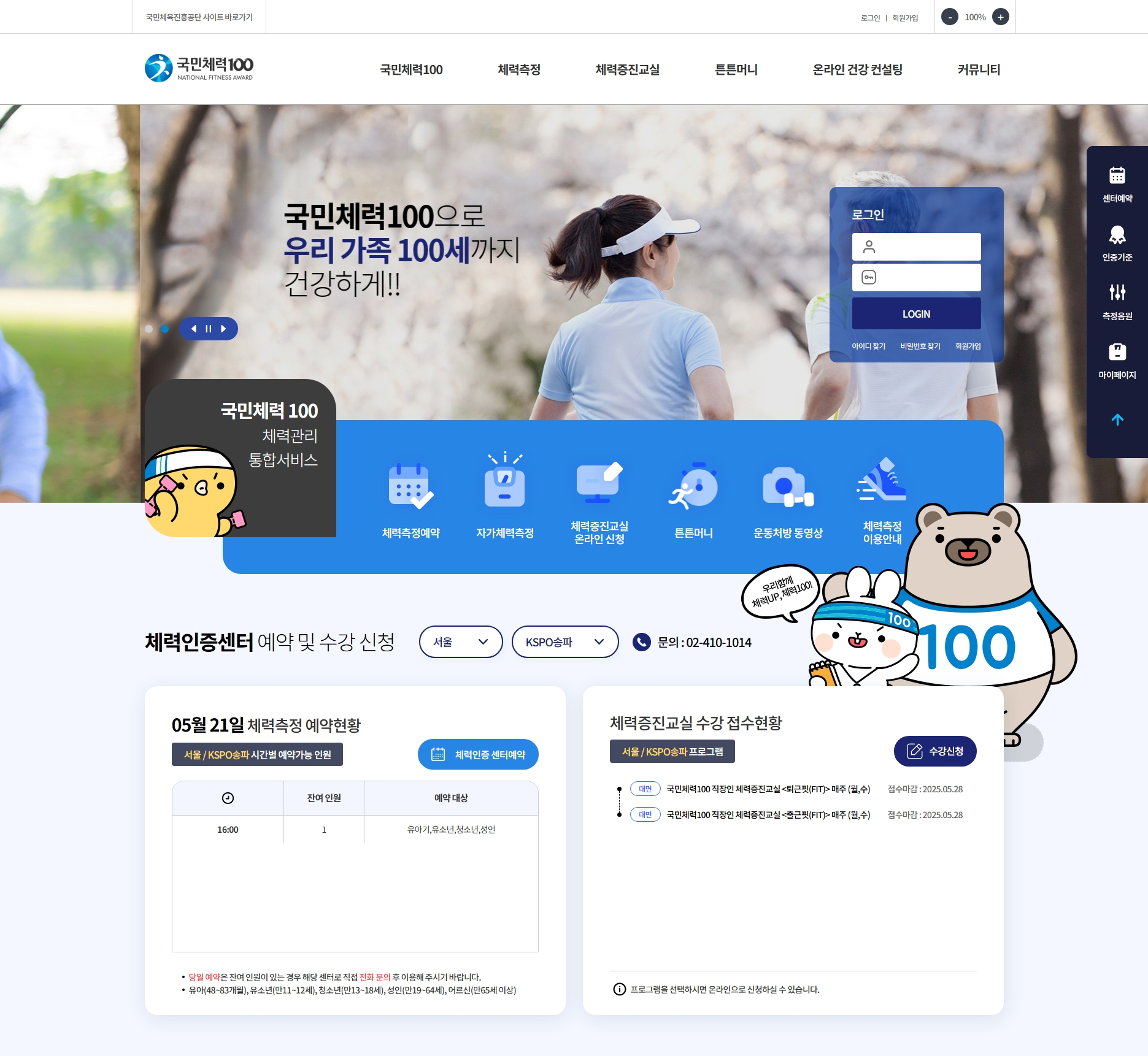 국민체력 100 | 체력증진교실 | 체력증진교실 | 프로그램 신청