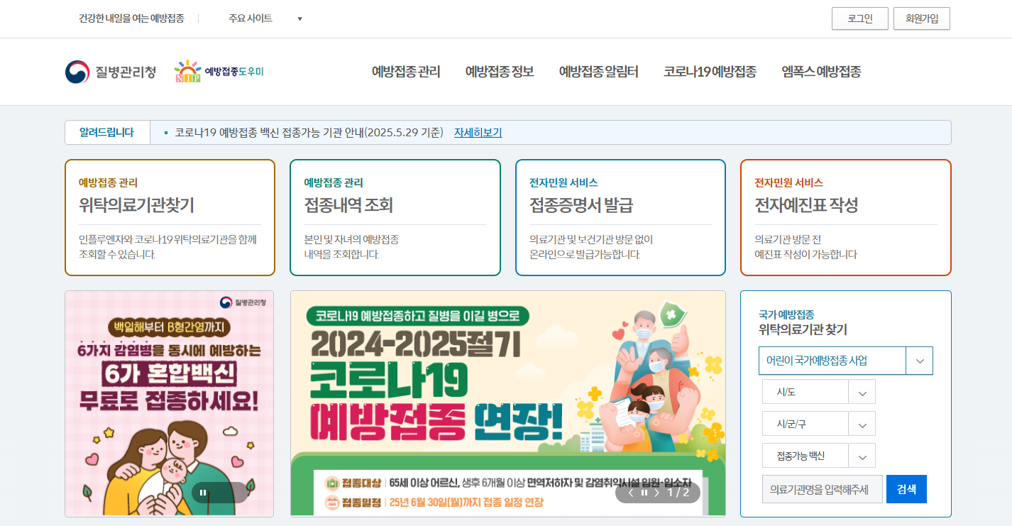 질병관리청이 운영하는 예방접종도우미 누리집은 예방접종 내역 확인과 증명서 발급이 동시에 가능한 공식 웹사이트다. 이 사이트는 PC와 모바일 모두에서 접속 가능하며, 회원가입 후 로그인을 해야 한다. 로그인 방법은 공인인증서 또는 공동인증서를 통한 본인 인증으로 이루어진다.