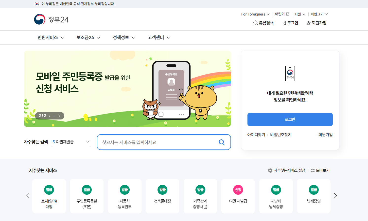 정부24는 주민등록등본, 가족관계증명서 등 각종 민원서류를 온라인으로 발급할 수 있는 대표적인 정부 포털이다. 예방접종 증명서 역시 이 사이트를 통해 신청 가능하다.